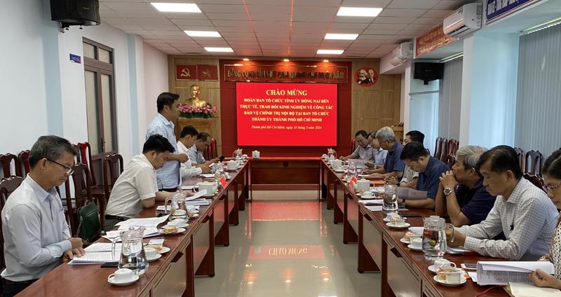 (CTT-Đồng Nai)- Ngày 17-5, Đoàn công tác của Ban Tổ chức Tỉnh ủy Đồng Nai do Phó trưởng Ban Tổ chức Tỉnh ủy Nguyễn Thanh Tú làm trưởng đoàn đã có buổi làm việc với Ban Tổ chức Thành ủy Thành phố Hồ Chí Minh về công tác bảo vệ chính trị nội bộ.