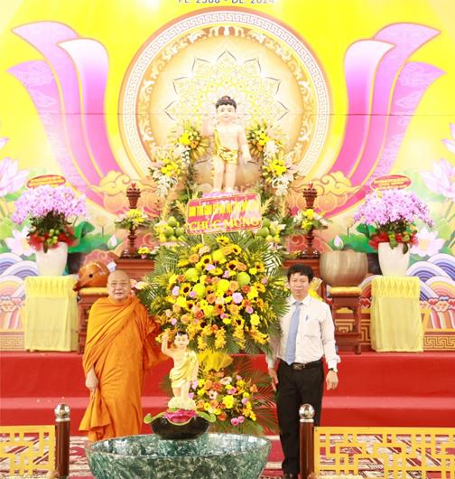 Dịp này, Trưởng Ban Dân vận Tỉnh ủy Cao Tiến Dũng đã tặng hoa chúc mừng Phật đản của Tỉnh ủy - HĐND - UBND - Ủy ban MTTQ Việt Nam tỉnh đến Ban Trị sự GHPG Việt Nam tỉnh.