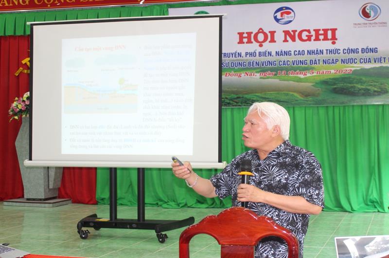 PGS.TS Nguyễn Chu Hồi, nguyên Phó Tổng cục trưởng Tổng cục Biển và Hải đảo Việt Nam giới thiệu vai trò của các bên liên quan trong việc quản lý, bảo tồn và sử dụng bền vững các vùng đất ngập nước của Việt Nam; nâng cao năng lực thích ứng và ứng phó với biến đổi khí hậu cho cộng đồng, hỗ trợ phát triển mô hình sinh kế bền vững về môi trường, mô hình bảo tồn và sử dụng bền vững các vùng đất ngập nước cho cộng đồng dân cư ở vùng đất ngập nước, vùng đệm và vùng chuyển tiếp.