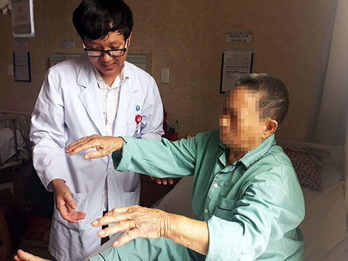 BS. Quang tái khám cho bệnh nhân sau ca cấp cứu đột quỵ.