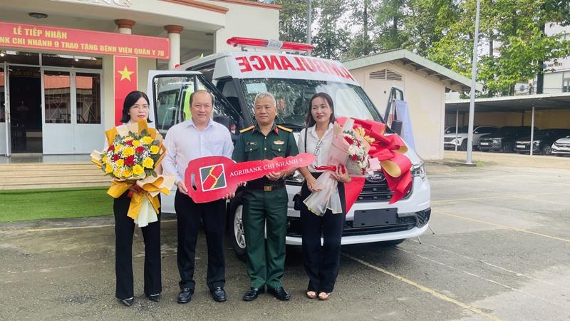 (CTT-Đồng Nai) Bệnh viện Quân y 7B (TP.Biên Hòa) vừa tiếp nhận xe ô tô cứu thương do Ngân hàng Nông nghiệp và Phát triển nông thôn Việt Nam (Agribank) chi nhánh 9 trao tặng nhằm phục vụ công tác khám, chữa bệnh.