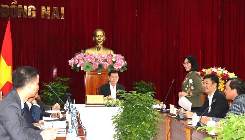 Phó Chủ tịch UBND tỉnh Nguyễn Thị Hoàng trao đổi những chính sách thu hút đầu tư của tỉnh Đồng Nai với doanh nghiệp.