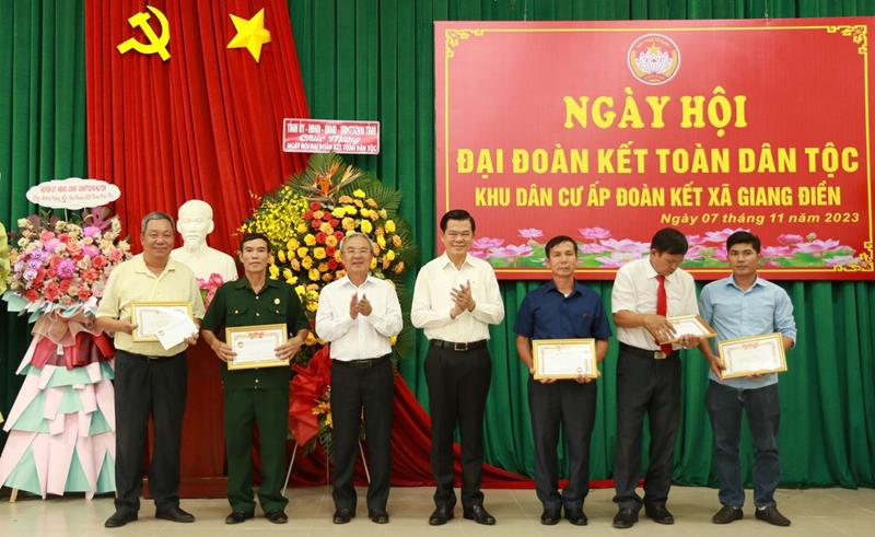 Bí thư Tỉnh ủy Nguyễn Hồng Lĩnh đã gửi lời chúc mừng đến toàn thể cán bộ, đảng viên và nhân dân của ấp, tặng hoa chúc mừng cùng quà của Tỉnh ủy - HĐND - UBND - Ủy ban MTTQ Việt Nam tỉnh cho ban ấp Đoàn Kết và các cá nhân, gia đình tiêu biểu của ấp nhân dịp tổ chức Ngày hội cũng như kết quả tích cực đạt được trong năm 2023.