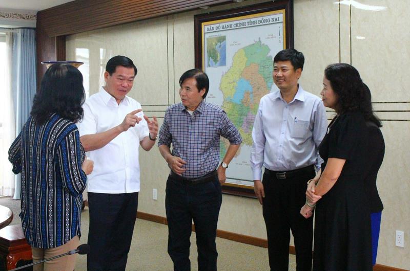 Ủy viên Trung ương Đảng, Bí thư Tỉnh ủy Nguyễn Hồng Lĩnh trò chuyện với lãnh đạo Hội Văn học nghệ thuật Đồng Nai