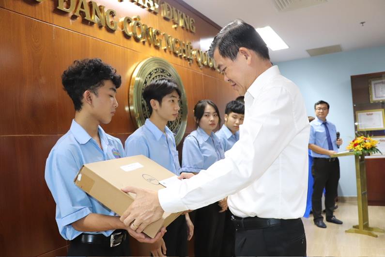Đồng chí Nguyễn Hồng Lĩnh, Ủy viên Trung ương Đảng, Bí thư Tỉnh ủy Đồng Nai trao tặng laptop cho sinh viên
