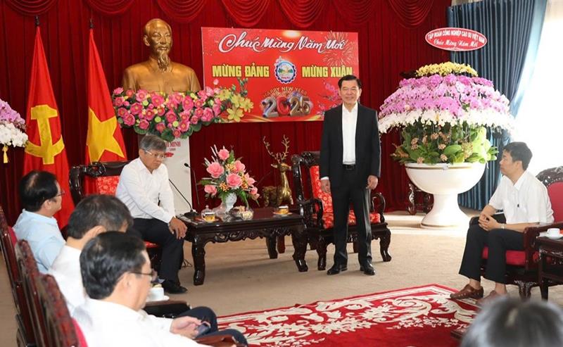 Lãnh đạo Tập đoàn Công nghiệp Cao su Việt Nam gửi lời cảm ơn đến lãnh đạo Tỉnh ủy, HĐND, UBND và các sở ban ngành của tỉnh Đồng Nai luôn quan tâm, tạo điều kiện cho các công ty thành viên đóng chân trên địa bàn hoạt động sản xuất, kinh doanh. Đồng thời, gửi lời chúc mừng năm mới đến Đảng bộ và Nhân dân tỉnh Đồng Nai, chúc tỉnh sẽ tiếp tục hoàn thành tốt các mục tiêu, nhiệm vụ phát triển kinh tế - xã hội trong năm 2025 và cả nhiệm kỳ 2020-2025.