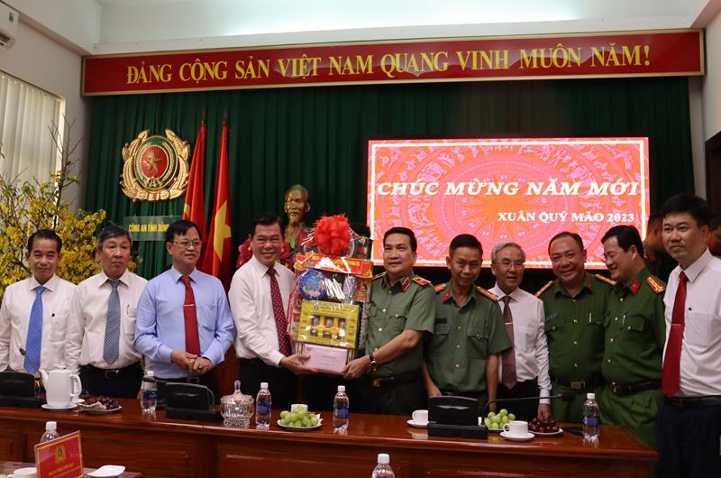 Đồng chí Bí thư đã tặng quà, chúc Tết Bộ CHQS tỉnh, Công an tỉnh sang năm mới thắng lợi mới, tiếp tục xứng đáng là lực lượng chính trị nòng cốt bảo vệ Đảng, Nhà nước và Nhân dân.