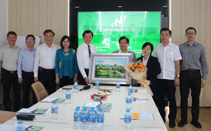 Theo đó, đoàn đã đến thăm và chúc mừng Công ty TNHH Sản xuất và thương mại Diệp Nam Phương tại khu công nghiệp Lộc An-Bình Sơn. Diệp Nam Phương được thành lập cách đây 10 năm, là doanh nghiệp phân phối gia công các sản phẩm kim loại, thép hợp kim, đặc biệt là thép không gỉ. Năm 2022 doanh nghiệp đầu tư nhà máy sản xuất với tổng vốn 140 tỷ đồng, quy mô 250 ngàn tấn/năm. Tháng 4-2024, nhà máy mới của công ty tại khu công nghiệp này chính thức đi vào hoạt động, đến nay doanh thu đạt 130 tỷ, và hiện vẫn còn đang trong giai đoạn đầu tư.