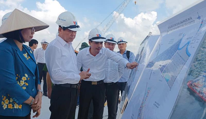 Bí thư Tỉnh ủy Nguyễn Hồng Lĩnh nghe báo cáo về tiến độ triển khai Cảng Phước An