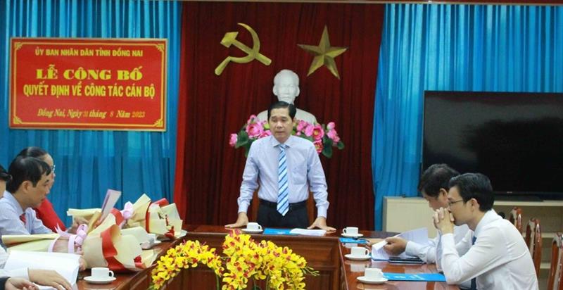 (CTT-Đồng Nai) - Sáng 31-8, UBND tỉnh tổ chức lễ công bố quyết định về công tác cán bộ. Thừa ủy quyền của Quyền Chủ tịch UBND tỉnh, Giám đốc Sở Nội vụ Trần Quang Tú chủ trì hội nghị.