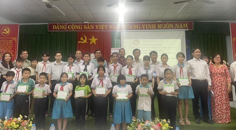 Hội khuyến học xã Long Phước (H.Long Thành) tặng học bổng cho học sinh có hoàn cảnh khó khăn trong buổi khai mạc tuần lễ hưởng ứng học tập suốt đời