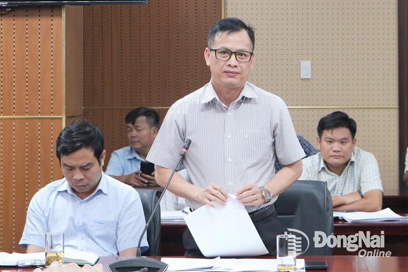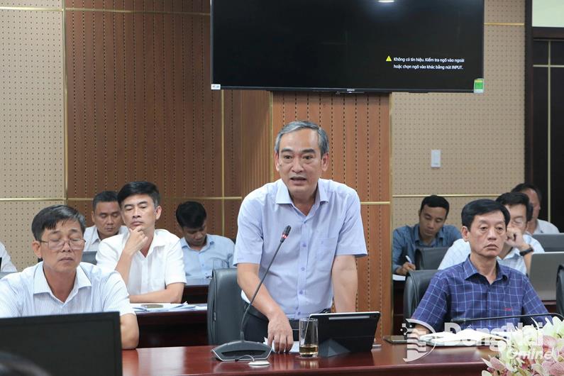 Phó Giám đốc phụ trách Ban Quản lý dự án đầu tư xây dựng tỉnh Đinh Tiến Hải phát biểu tại buổi làm việc. Ảnh: Phạm Tùng