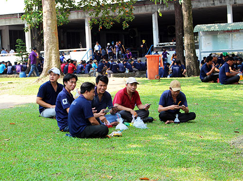 Công nhân Công ty TNHH Changshin Việt Nam trong giờ nghỉ trưa tại công viên cây xanh.