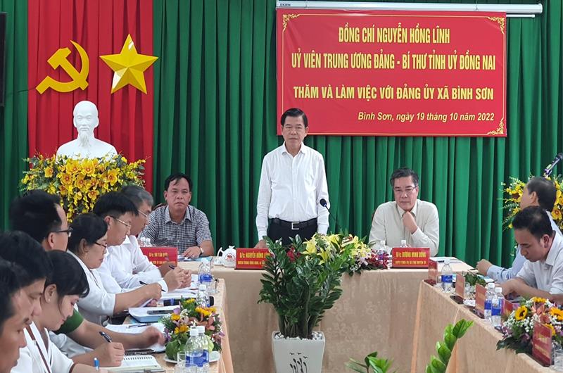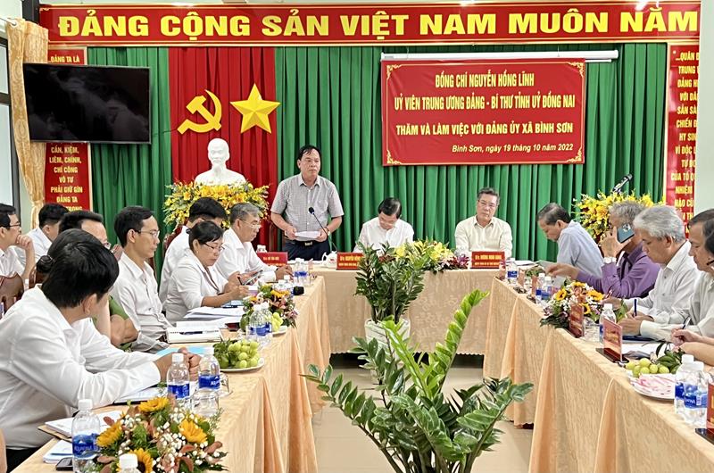 Chia sẻ tại buổi làm việc, Bí thư Tỉnh ủy nhấn mạnh, Bình Sơn là vùng đất cách mạng, nay được chọn là địa điểm để xây dựng Cảng hàng không quốc tế Long Thành (sân bay Long Thành), Đảng ủy xã cần chỉ đạo làm tốt hơn nữa công tác tuyên truyền để người dân thấy việc xây dựng sân bay Long Thành ở địa phương mình là niềm tự hào, cơ hội đổi đời, từ đó để người dân có động lực mạnh mẽ phát triển vùng đất mình trong tương lai.