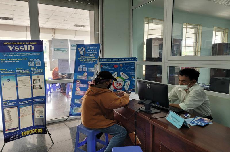 Người dân thực hiện thủ tục hành chính tại BHXH tỉnh