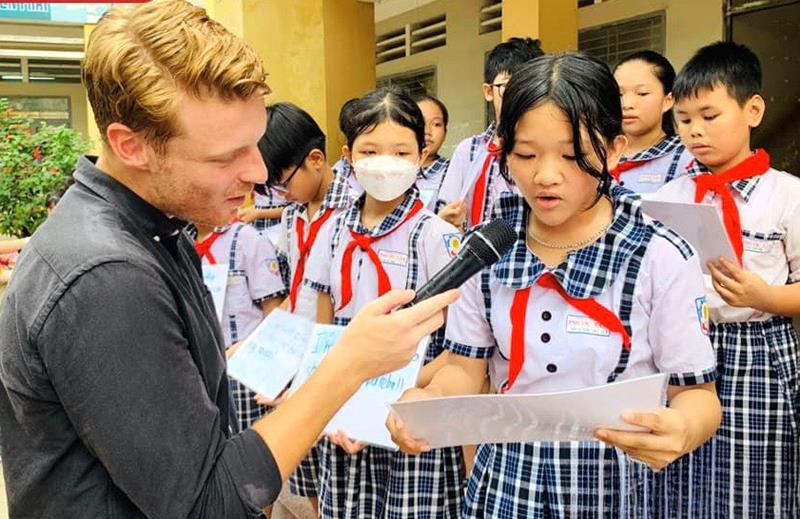 Học sinh Trường Tiểu học Phước Tân (P.Phước Tân, TP.Biên Hòa) trong một buổi tương tác tiếng Anh với giáo viên nước ngoài