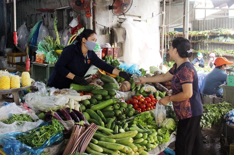 Người tiêu dùng chọn mua các loại thực phẩm tại chợ Tân Hiệp (TP.Biên Hòa)