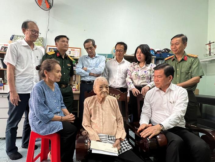 Bí thư Tỉnh ủy Nguyễn Hồng Lĩnh thăm, động viên tặng quà mẹ Việt Nam anh hùng Nguyễn Thị Mùi, ngụ phường Tân Tiến, thành phố Biên Hòa