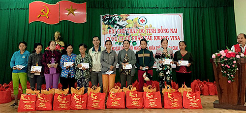 * Ngày 30-1, Hội Chữ thập đỏ tỉnh phối hợp cùng Công ty cổ phần Taekwang Vina (KCN Biên Hòa 2) tổ chức trao tặng 300 phần quà cho người nghèo, nạn nhân chất độc da cam, đồng bào dân tộc thiểu số tại 2 huyện Tân Phú và Định Quán. Theo đó, 150 phần quà đã được trao cho người dân ở xã Gia Canh (huyện Định Quán) và 150 phần quà trao tặng cho bà con ở thị trấn Tân Phú (huyện Tân Phú). Trị giá mỗi phần quà là 400.000 đồng, gồm: 100.000 đồng tiền mặt và gạo, đường, bánh, bột ngọt…