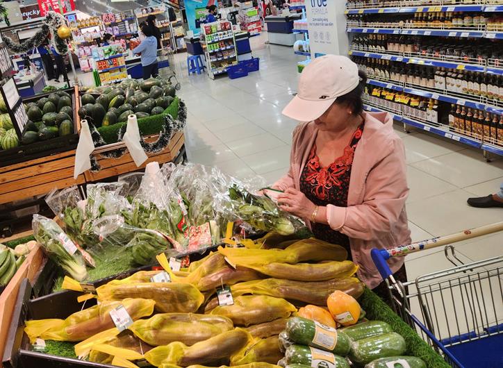 Người tiêu dùng chọn mua các sản phẩm nông sản tại một siêu thị ở thành phố Biên Hòa