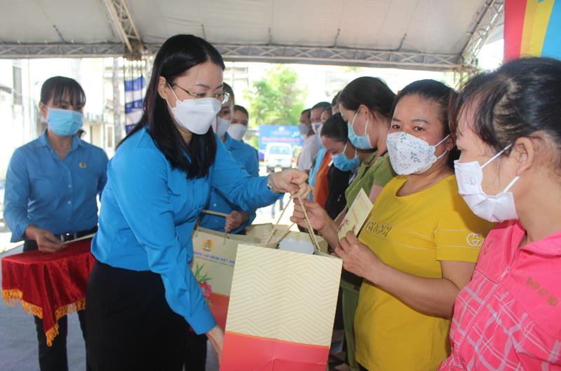 Liên đoàn Lao động động tặng quà tết công nhân khó khăn