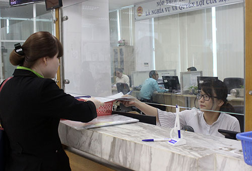 Doanh nghiệp đóng thuế tại Chi cục Thuế TP.Biên Hòa. Ảnh: H.Giang