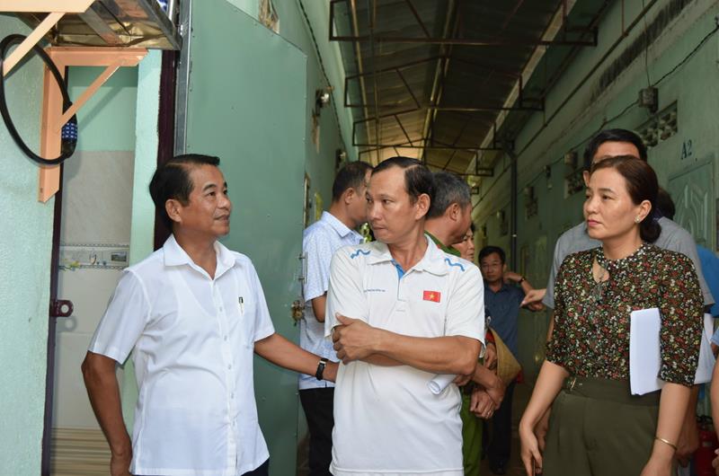 Chủ tịch HĐND tỉnh Thái Bảo cùng lãnh đạo các sở, ban, ngành khảo sát một khu nhà trọ công nhân ở xã Tây Hòa (H.Trảng Bom)