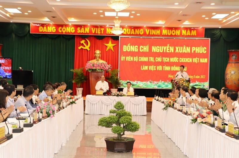 Phát biểu tại buổi làm việc Chủ tịch nước Nguyễn Xuân Phúc cho rằng, sự phát triển kinh tế của Đồng Nai những năm qua đã chiếm đến 12% GRDP của toàn vùng. Là tỉnh công nghiệp nhưng Đồng Nai cũng đi đầu về xây dựng nông thôn mới; thu nhập và mức sống người dân nông thôn không quá chênh lệch với vùng đô thị.