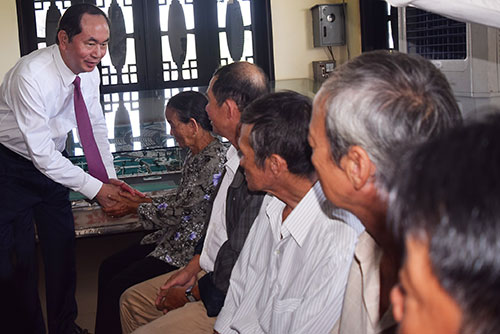 Chủ tịch nước Trần Đại Quang thăm hỏi thân nhân liệt sĩ hy sinh tại Sân bay Biên Hòa Xuân Mậu Thân 1968.