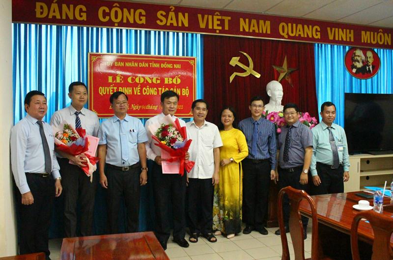 Chủ tịch UBND tỉnh Cao Tiến Dũng và lãnh đạo các sở ngành, đơn vị chúc mừng các đồng chí nhận quyết định công tác cán bộ tại buổi lễ