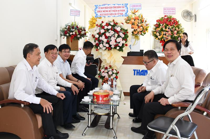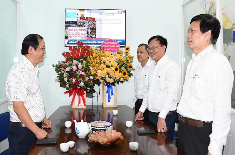 Chủ tịch UBND tỉnh Cao Tiến Dũng (thứ 2 từ phải qua) đến chúc mừng Văn phòng Thông tấn xã Việt Nam tại Đồng Nai nhân kỷ niệm 97 năm Ngày Báo chí cách mạng Việt Nam (21/6/1925 - 21/6/2022),