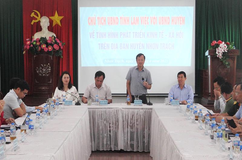 Phát biểu chỉ đạo tại buổi làm việc, Chủ tịch UBND tỉnh Cao Tiến Dũng đánh giá cao tỷ lệ giải ngân vốn đầu tư công của huyện Nhơn Trạch và đề nghị các Sở, ngành cần quan tâm, ưu tiên nguồn vốn cho những địa phương nào làm tốt công tác này. Lãnh đạo tỉnh cũng đề nghị huyện nắm bắt tình hình lao động, nhất là lao động thuộc các ngành nghề may mặc, giày da để có chính sách hỗ trợ; tập trung thực hiện các dự án nhà ở xã hội, công tác giải quyết đơn thư, khiếu nại. Huyện Nhơn Trạch định hướng phát triển lên đô thị nên cần xử lý tốt phân loại rác tại nguồn, quản lý đất công phải chặt chẽ hơn nữa; chính quyền phải chủ động ra quân diệt lăng quăng ngay từ đầu mùa mưa để phòng, chống dịch sốt xuất huyết cũng như có phương án phòng, chống dịch Covid-19 đang có nguy cơ tái bùng phát. Đối với những kiến nghị thuộc thẩm quyền xử lý của các Sở ngành, Chủ tịch UBND tỉnh đề nghị sớm thực hiện để huyện Nhơn Trạch hoàn thành các mục tiêu, chỉ tiêu phát triển kinh tế - xã hội từ nay đến cuối năm.