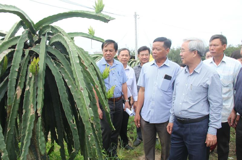 Chủ tịch Ủy ban MTTQ Việt Nam tỉnh, Trưởng ban chỉ đạo 264 tỉnh Cao Văn Quang khảo sát thực tế tại HTX Nông nghiệp, dịch vụ thương mại thanh long Xuân Hưng (H.Xuân Lộc)
