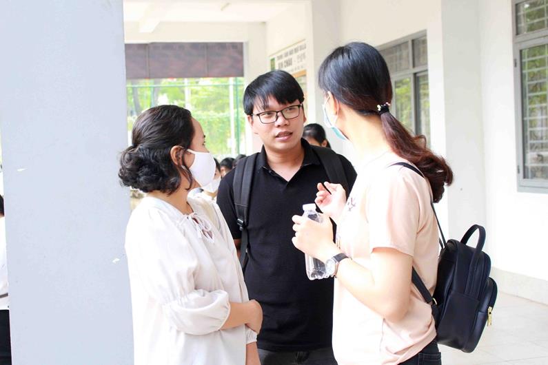 Các thí sinh tham dự kỳ thi tuyển dụng công chức hành chính nhà nước năm 2023 trao đổi trước giờ vào phòng thi