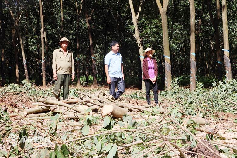 | Người dân xã Đồng Tâm cắt cây để bàn giao mặt bằng thực hiện Dự án đường cao tốc Bắc Nam phía Tây đoạn Gia Nghĩa - Chơn Thành. Ảnh: Xuân Túc |