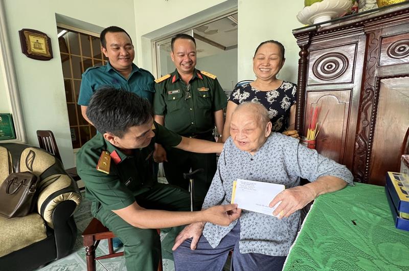 Đảng ủy, Ban CHQS H.Trảng Bom tặng quà của Bộ CHQS tỉnh và huyện cho mẹ VNAH Lê Thị Cơ, TT.Trảng Bom
