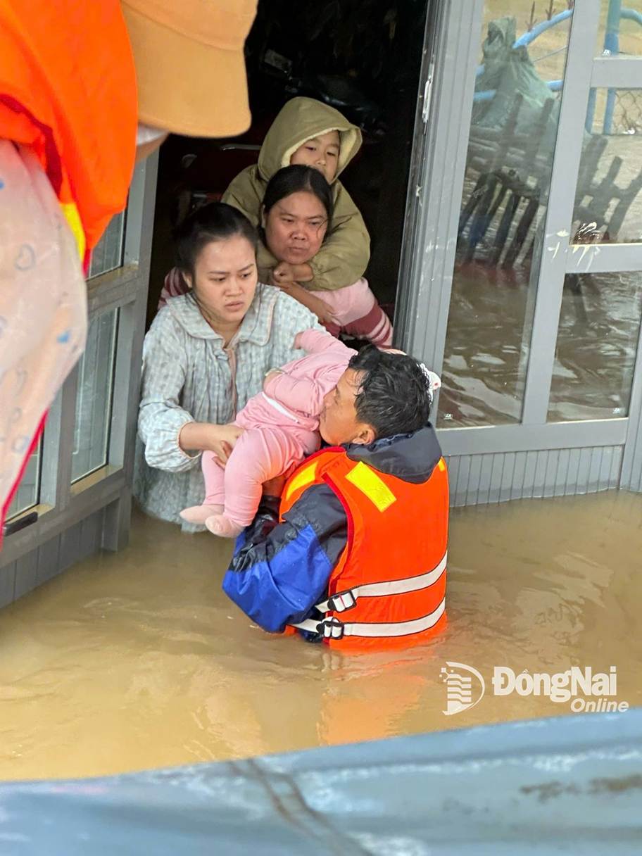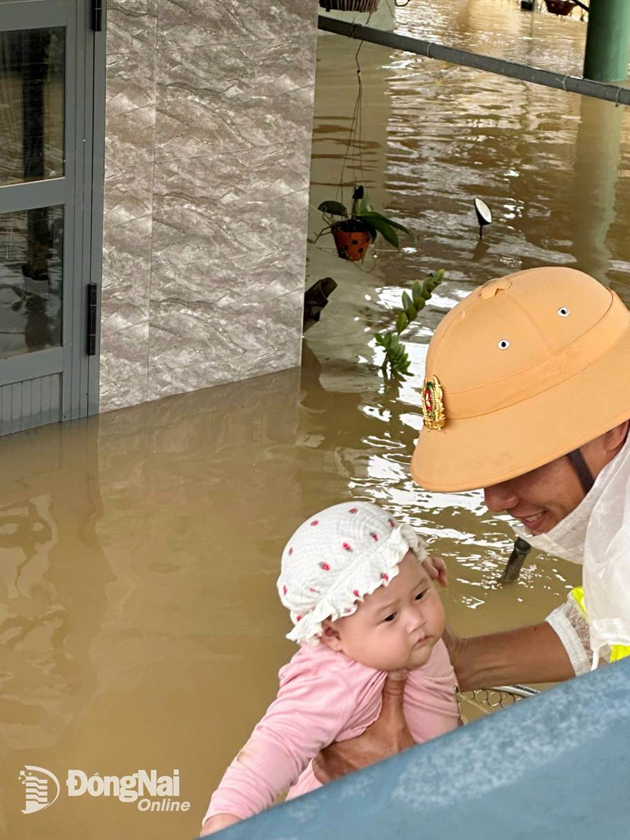 rước đó, một số cán bộ, chiến sĩ Công an Đồng Nai đã có mặt giúp dân vùng lũ. Ảnh: CAT