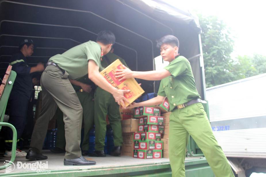 Cán bộ, chiến sĩ Công an tỉnh Đồng Nai xuất quân hỗ trợ người dân vùng lũ miền Trung. Ảnh: Trần Danh