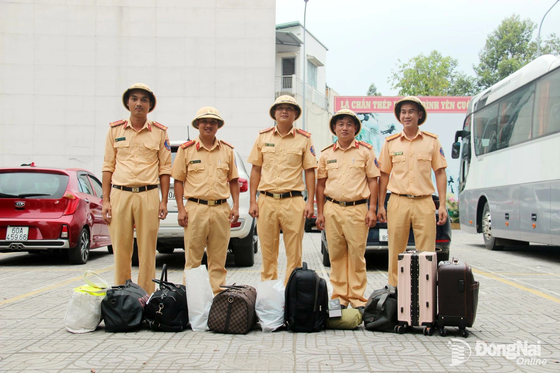 Lực lượng cảnh sát giao thông sẵn sàng lên đường làm nhiệm vụ. Ảnh: Trần Danh