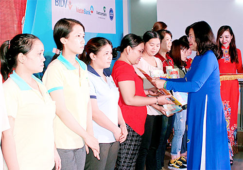 Phó Chủ tịch UBND tỉnh Nguyễn Hòa Hiệp tặng quà cho công nhân lao động có hoàn cảnh khó khăn tại chương trình Tết sum vầy 2019 do LĐLĐ tỉnh tổ chức.