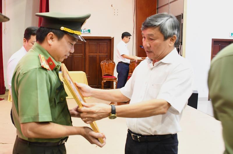 Phó Chủ tịch UBND tỉnh Nguyễn Sơn Hùng trao bằng khen của UBND tỉnh cho các cá nhân có thành tích xuất sắc trong việc thực hiện Chương trình phối hợp giữa Ban Dân vận Tỉnh ủy và Công an tỉnh giai đoạn 2016-2021.