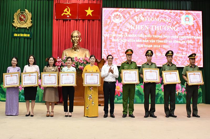 Dịp này, UBND tỉnh tặng Bằng khen cho 6 tập thể và 12 cá nhân có thành tích xuất sắc trong việc thực hiện chương trình phối hợp giữa Ban Dân vận Tỉnh ủy và Công an tỉnh giai đoạn 2016-2021; Ban Dân vận Tỉnh ủy và Công an tỉnh cũng tặng Giấy khen cho 27 tập thể và 24 cá nhân.