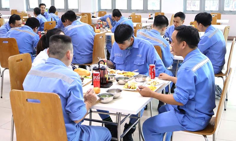 Bên cạnh đó, gần 600 đoàn viên, công nhân, người lao động được công ty tổ chức bữa ăn đặc biệt, với mỗi suất ăn trị giá 120.000 đồng/suất với đa dạng các món.