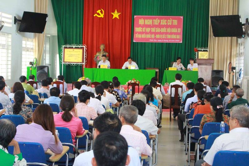 (CTT- Đồng Nai) - Tiếp tục thực hiện chương trình tiếp xúc cử tri (TXCT) trước Kỳ họp thứ 6, Quốc hội XV, ngày 5-10, Tổ đại biểu Quốc hội (ĐBQH) đơn vị số 2 của tỉnh gồm các đại biểu: Bùi Xuân Thống, Phó trưởng đoàn chuyên trách Đoàn ĐBQH tỉnh; Lê Hoàng Hải, Ủy viên chuyên trách Ủy ban Khoa học, Công nghệ và Môi trường của Quốc hội đã TXCT tại H.Vĩnh Cửu.