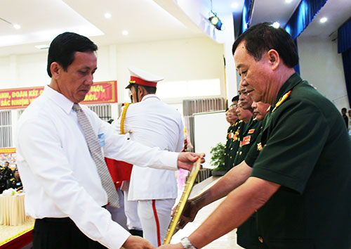 Trưởng ban Tổ chức Tỉnh ủy Phạm Văn Ru trao bằng khen của UBND tỉnh cho các CCB gương mẫu.