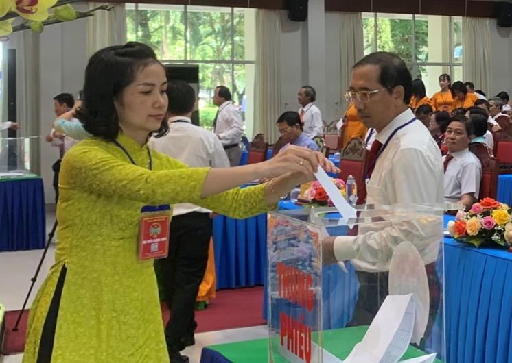 Các đại biểu bỏ phiếu bầu Ban Chấp hành Hội Nông dân tỉnh Khóa X, nhiệm kỳ 2023-2028