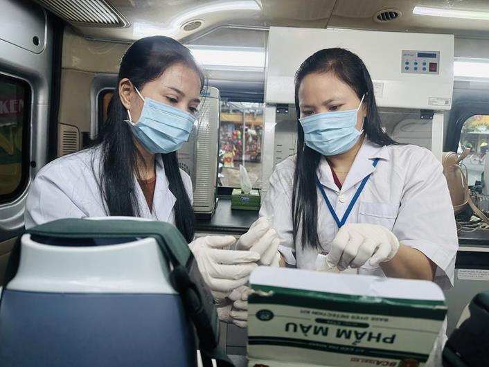 Nhân viên y tế thực hiện test nhanh thực phẩm với hàn the