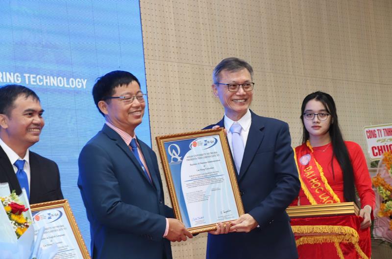 Ông Johnson Ong Chee Bin, chuyên gia AUN-QA, nhà sáng lập Tổ chức Chất lượng giáo dục quốc tế trao chứng nhận kiểm định chất lượng giáo dục cho 6 ngành đào tạo của Trường đại học Lạc Hồng