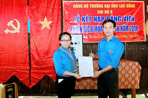 Công tác phát triển Đảng cho sinh viên các trường học có điểm khác biệt so với các cơ quan, đơn vị khác là vai trò của tổ chức Đoàn, Hội sinh viên được thể hiện rõ nét, từ khâu phát hiện nhân tố tích cực đến góp phần bồi dưỡng, rèn luyện, phát triển và giới thiệu vào Đảng. Tại Trường đại học Lạc Hồng, Đoàn thanh niên và Hội Sinh viên thường xuyên đổi mới các hình thức sinh hoạt Đoàn để thu hút sinh viên tham gia. Cùng với đó là đẩy mạnh các hoạt động văn hóa, văn nghệ, thể dục thể thao gắn với các phong trào thi đua như: “Sinh viên thi đua học tập, rèn luyện, nghiên cứu khoa học”, “Sáng tạo trẻ” , “Tình nguyện vì cuộc sống cộng đồng”, “Sinh viên 5 tốt”… Các phong trào này đã tạo môi trường để sinh viên rèn luyện và phấn đấu, đồng thời xuất hiện những quần chúng tiêu biểu để Đảng xem xét kết nạp. Đặc biệt, công tác phát hiện, bồi dưỡng và giới thiệu sinh viên ưu tú trên mặt trận tình nguyện được nhà trường quan tâm. Trong các năm gần đây, nhiều sinh viên ưu tú đã được thử thách, rèn luyện và trưởng thành tại các mặt trận “Mùa hè xanh”. Chi bộ Sinh viên trường cũng đã đổi mới hình thức tổ chức kết nạp đảng viên mới ngay tại các mặt trận tình nguyện hoặc các địa chỉ đỏ như Chiến khu Đ, Văn miếu Trấn Biên…