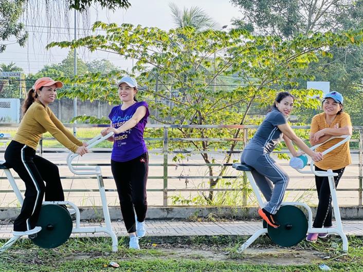 Người dân trên địa bàn TT.Vĩnh An, H.Vĩnh Cửu luyện tập tại các dụng thể thao ngoài trời, được thực hiện từ nguồn xã hội hóa